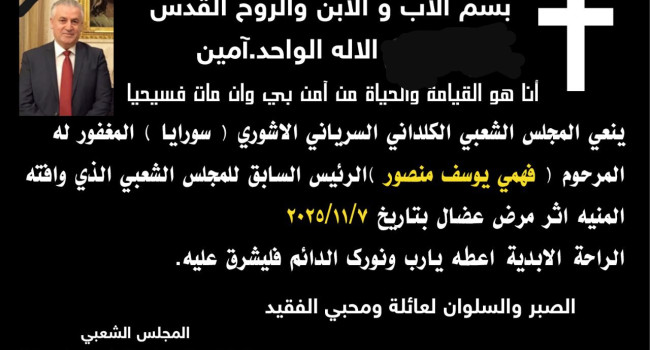 المنظمة الاثورية الديمقراطية تعزي برحيل الرئيس السابق للمجلس الشعبي فهمي يوسف منصور