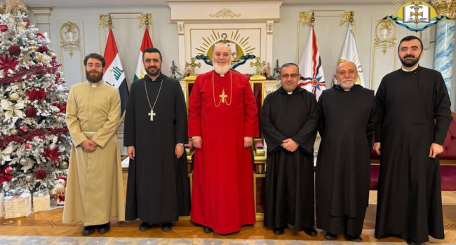 قداسة البطريرك مار آوا الثالث يستقبل الأنبا د. سامر سوريشو يرافقه الآباء الرهبان من دير الشهيد الأنبا جبرائيل دنبو في عنكاوا لتقديم التهاني بمناسبة عيد الميلاد المجيد ورأس السنة الجديدة