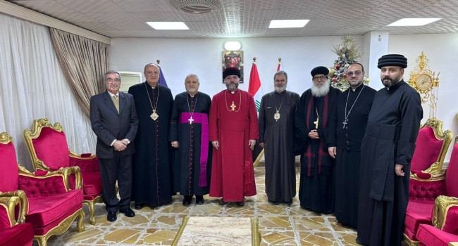 • غبطة البطريرك يونان يستقبل غبطة أخيه روفائيل بيدروس الحادي والعشرين ميناسيان بطريرك الأرمن الكاثوليك للتهنئة بعيد الميلاد ورأس السنة