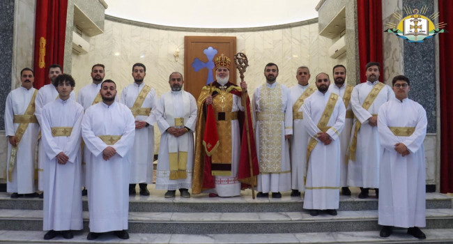 • بوضع اليمين المباركة لقداسة البطريرك مار آوا الثالث، رسامة عدد من الشمامسة لكاتدرائيّة مار يوخنّا المعمدان البطريركيّة في عنكاوا