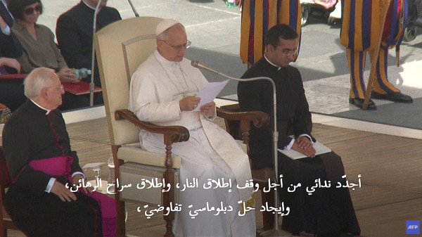 وأكد البابا: "أجدّد ندائي من أجل وقف إطلاق النار، وإطلاق سراح الرهائن، وإيجاد حلّ دبلوماسيّ تفاوضيّ، واحترام كامل للقانون الإنسانيّ الدوليّ".