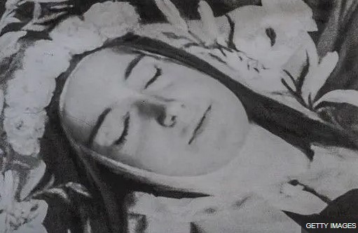 توفيت تريز يوم الخميس 30 سبتمبر/أيلول عام 1897، وكانت آخر كلمات نطقت بها "إني أحبه...إلهي...إني... أحبك"، ورأت الراهبات الجاثيات وجهها يعود هادئاً جداً، وفي الغد، يوم الجمعة، عُرض جثمان تريز في الخورس، وفي غرفة المرضى التقطت لها أختها جينفياف صورتها الشمسية الشهيرة، ودُفنت في الرابع من أكتوبر/تشرين الأول.
