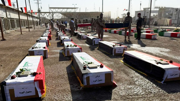 شهد منفذ الشلامجة الحدودي في محافظة البصرة، صباح الأحد، مراسم تبادل رفات جنود عراقيين وإيرانيين قضوا خلال الحرب التي اندلعت بين البلدين في ثمانينات القرن الماضي.