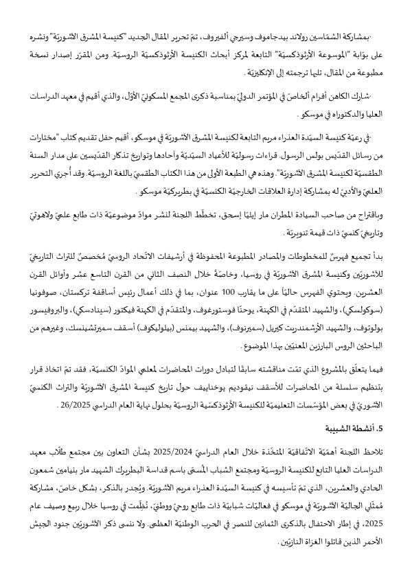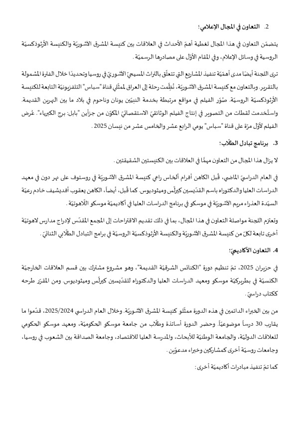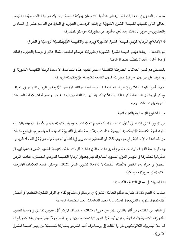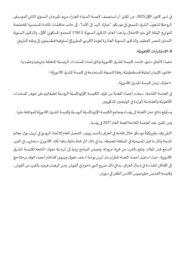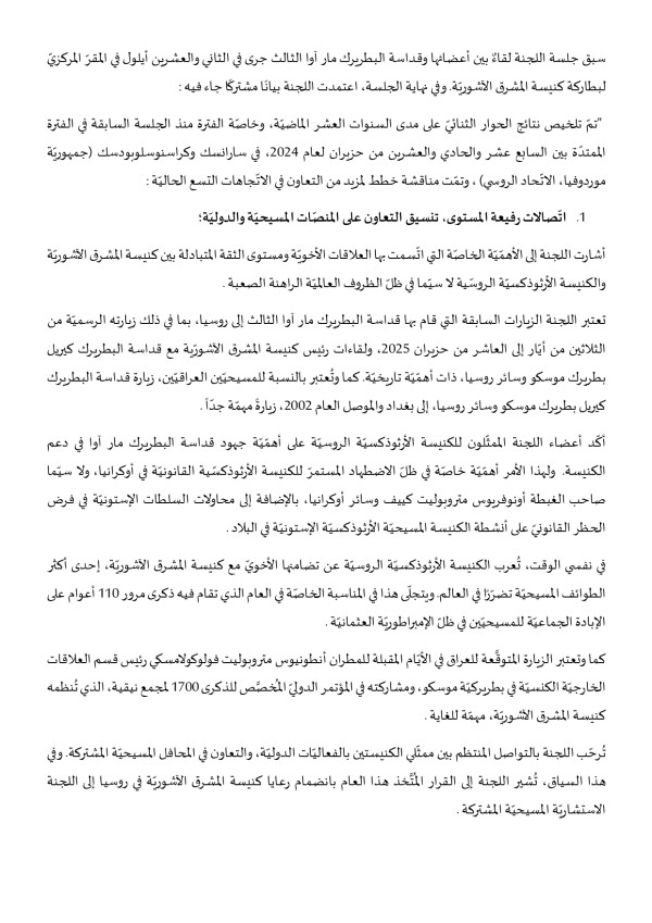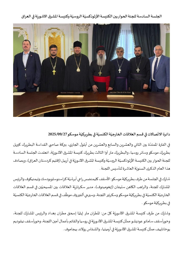 البيان الختامي للّقاء السنوي السادس للجنة الحوار الثنائية بين كنيسة المشرق الآشورية والكنيسة الأرثوذكسية الروسية