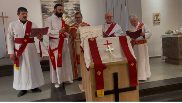 قام الأب مفيد مرقس كاهن رعية مار كيوركيس الشهيد في مدينة يونشوبينك السويدية بأقامة القداس الإلهي وذلك يوم السبت المصادف: ٠٨ - تشرين الثاني / نوفمبر - ٢٠٢٥ بمناسبة الأحد الثاني من موسى وذكر امام مذبح الرب الشماس شليمون شليمون برخو وبحضور الاب سنحاريب أرميا كاهن رعية مار افرام ربا في الدنمارك ويرافقه السيد مارادونا اندريوس رئيس الهيئة الأدارية للكنيسة الشرقية القديمة ،، والشمامسة الكرام كل من الشماس بنخيس خوشابا والشماس ابرام ش. ناصر والشماس مالديني وليام والشماس صباح كوركيس بحضور الأب فادي والشمامسة من الكنيسة الكلدانية في مدينة يونشوبينك والشماس ادور من كنيسة المشرق،،،
