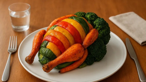 التحول من النظام الغذائي التقليدي للنظام النباتي يخفض البصمة الكربونية لكنه خطر على الصحة، صورة منشأة بالذكاء الاصطناعي - الشرق