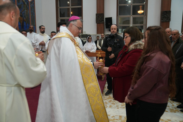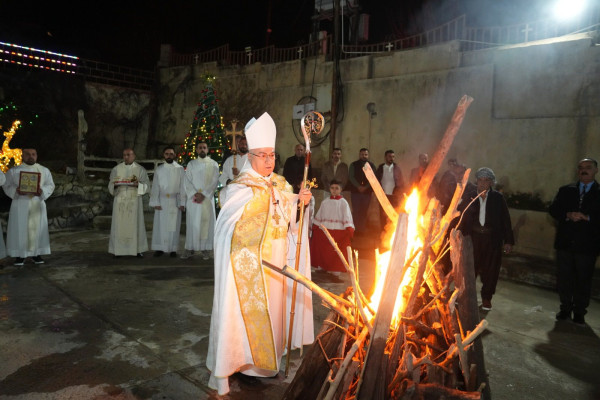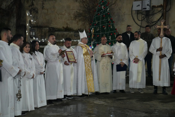 انطلقت الاحتفالية عند الساعة الثامنة مساءً بإشعال شعلة الميلاد، في أجواءٍ روحية مفعمة بالفرح والرجاء، ثم دخل موكب الجوق والشمامسة إلى الكنيسة، ليبدأ بعدها قدّاسٌ احتفالي تميّز بتراتيل ميلادية وليتورجيا مهيبة عبّرت عن فرح الكنيسة بسرّ التجسّد. وقدّم سيادته الذبيحة الإلهية على نيّة مؤمني الأبرشية جميعًا، ولاسيّما على نيّة المؤمنين الراقدين.