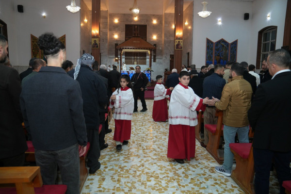 وفي كلمته الافتتاحيّة، رحّب سيادته بالمؤمنين، معبّرًا عن شكره الصادق لكلّ من قدّم التهاني بأعياد الميلاد، ولاسيّما إخوتنا المسلمين الذين يشاركوننا أفراحنا وأحزاننا، كما نحرص نحن أيضًا أن نشاركهم مناسباتهم. وتوقّف عند حادثة التعرّض لمقابر المسيحيين في أرموطة وشقلاوة، معتبرًا إيّاها فعلًا مؤلمًا جرح الذاكرة وأثار القلق، من دون أن يمسّ كرامة أبناء هذه الأرض أو رجاءهم. وأكّد أنّ الحفاظ على العيش المشترك هو مسؤوليّة الجميع، لا طرفًا واحدًا ولا الحكومة وحدها، بل كلّ إنسان من خلال كلمته وتصرفه، مشدّدًا على الرجاء بأن يكون العراق بيتًا واحدًا يتّسع للجميع، وداعيًا إلى اختيار الحكمة والكلمة الهادئة وروح السلام التي يحملها عيد الميلاد.