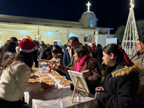 عقب أنتهاء القداس الإلهي, انطلقت أجواء احتفالية الميلاد بافتتاح السوق الخيري, والذي استعرض باقة من المعروضات اليدوية والمأكولات الميلادية التقليدية التي أبدعتها أنامل الشبيبة بروح من العطاء والمحبة. وقد سادت الأجواء بهجة غامرة, توجتها مشاركة الشبيبة في تقديم مشهد تمثيلي تجسد فيه قصة الميلاد المجيد ,تضمنت مشهداً مؤثراً للمغارة المتواضعة