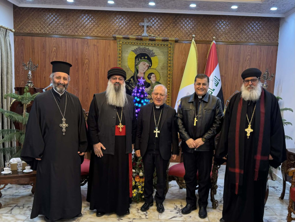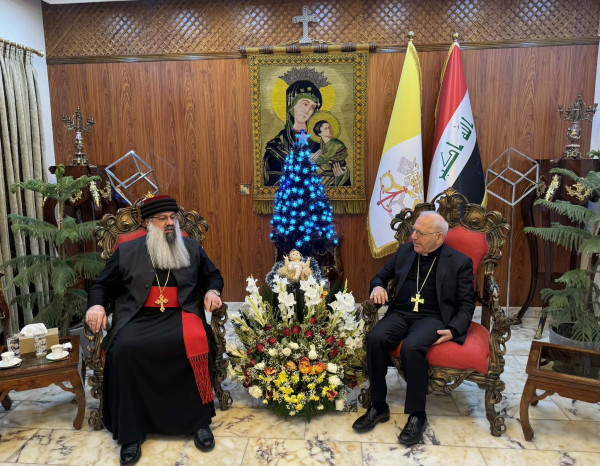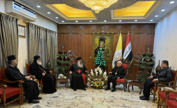 إستقبل غبطة البطريرك الكاردينال لويس روفائيل ساكو، مساء يوم الاثنين 29 كانون الأوّل/ ديسمبر 2025 وفدًا من رؤساء كنائس بغداد ضمَّ كلا من: سيادة المطران مار ايليا اسحاق مطران كنيسة المشرق الآشوريّة، الأيكونوموس يونان الفريد الوكيل العام لمطرانية الروم الأرثوذكس، القمص مينا الأورشليمي رئيس كنيسة الاقباط الأرثوذكس.