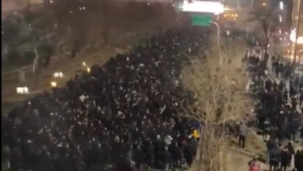 وقال شهود للصحيفة، إن حشوداً كانت متنوعة، وتضم رجالاً ونساءً، وشباباً وكباراً في السن، مشيرين إلى أن الهتافات كانت تُسمع من عدة شوارع في حي شهرك الراقي في طهران، وهو حي كان حتى وقت قريب بعيداً عن الاحتجاجات.