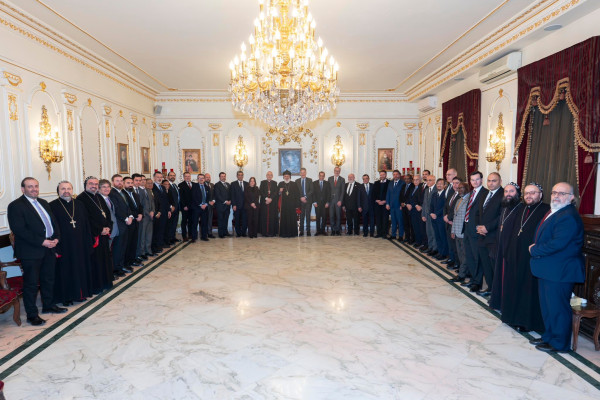 رحّب قداسة سيدنا البطريرك بالحضور وتحدّث عن الأحداث التي شهدها العالم في الآونة الأخيرة وتأثيرها على حياة المواطنين في سورية. كما أمل أن يحمل العام الجديد السلام والطمأنينة والازدهار لجميع الشعوب حول العالم، وبخاصة في سورية ومنطقة الشرق الأوسط. كذلك، شكر قداسته أصحاب السعادة على حضورهم في سورية معربًا عن امتنان السوريين لدعم الدول التي تساعد سورية على الخروج من حال الأزمة والخوف من المجهول نحو الاستقرار والأمان. وأمِل قداسته أن يستمرّ هذا الدعم ويزداد ليطال مراحل إعادة الإعمار ويسهم في تطوير البلد وانتقاله إلى مرحلة النمو والازدهار. وتطلّع قداسته إلى المستقبل حيث يعمل جميع السوريين معاً لبناء وطنهم مؤكداً أنّ السوريين يرفضون العنف ويريدون الحلول السلمية التي تضمن الوحدة الجغرافية لسورية وتحفظ حقوق جميع المواطنين ضمن التنوع القومي الذي يغني سورية ويميزها.
