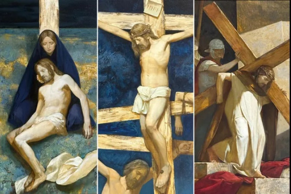 كذلك، اعتبر دور لوحة الصلب محور سلسلته الفنيّة، إذ بدأ بها وأَنْهى عمله فيها. ورأى في مشهد فيرونيكا والمسيح تعبيرًا عن جوهر عمله: أي ترك أثر يقود المتأمل إلى ما هو أعمق. وبذلك، تتألّق بازيليك القدّيس بطرس، بعد أربعة قرون من تكريسها، بلوحات تسمح بالتأمّل في آلام المسيح، باستمرارية تحترم الذاكرة المعمارية وتغتني برؤية فنية معاصرة.