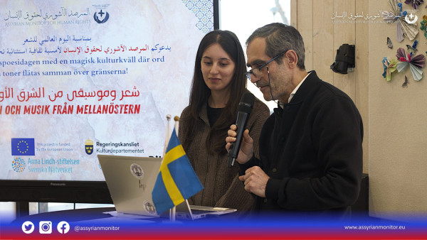 أقام المرصد الآشوري لحقوق الإنسان أمسية ثقافية متميزة احتفاءً باليوم العالمي للشعر، وذلك يوم الأحد الموافق 22 آذار/مارس 2026، في مجمع "أغورا" الثقافي بمدينة لينشوبينغ السويدية. شهدت الأمسية حضوراً لافتاً من المهتمين بالشأن الثقافي والحقوقي، وجاءت بالتعاون مع الاتحاد الأوروبي، وزارة الثقافة السويدية، بلدية لينشوبينغ، مؤسسة أنا ليند (الشبكة السويدية)، مجمع أغورا الثقافي، ومنظمة بيلدا التعليمية.