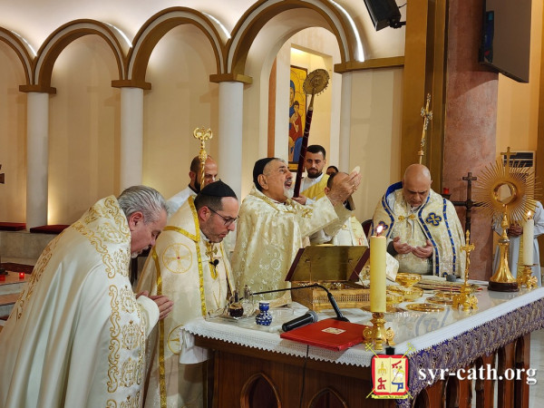 وقبل نهاية القداس، طاف غبطته حاملاً القربان المقدس في زيّاح حبري داخل الكاتدرائية، ومباركاً به جموع المؤمنين. ثمّ، وبعد فترة من السجود والتأمّل، منح غبطته المؤمنين البركة الختامية.