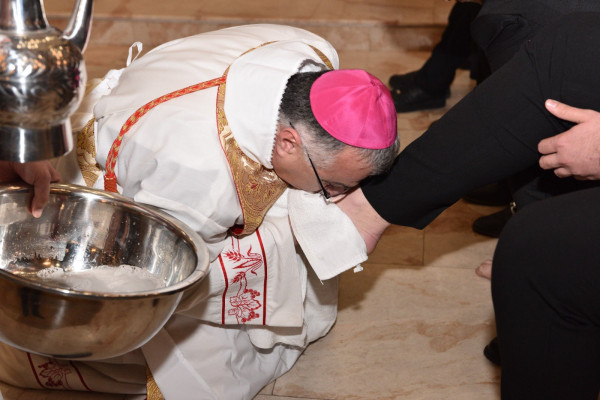 ترأس الاحتفال سيادة المطران بشار وردة، راعي الأيبارشية، وعاونه الأب سافيو حندولا، حيث تخللت القداس رتبة غسل أرجل التلاميذ، مستعيدين فيها صورة المسيح الخادم الذي انحنى ليغسل أقدام تلاميذه، معطيًا مثالًا حيًا للمحبة المتواضعة.