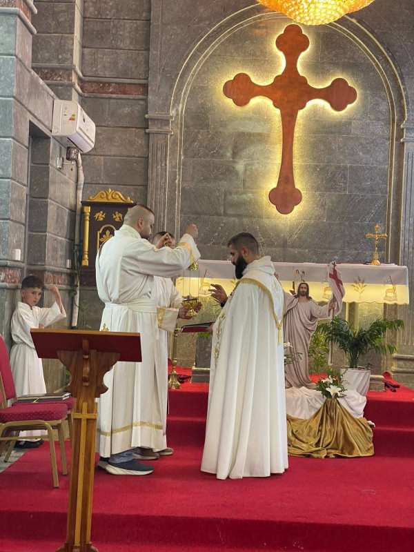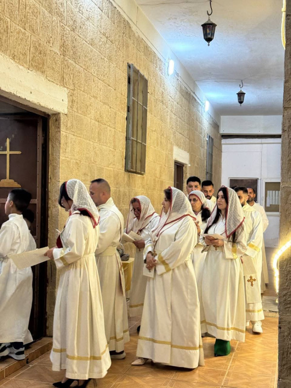 بدأت المراسيم في تمام الساعة السابعة والنصف عصراً، يوم السبت 4 نيسان 2026 حيث قُرعت أجراس الكنيسة لتُعلن بدء "قداس القيامة". وقبل الشروع في الخدمة، جرى زياح الشمامسة مع الأب سليمان حنا في تطواف مهيب عكس هيبة وعظمة المناسبة، ليترأس بعدها الخدمة الإلهية بروحانية عالية وترتيبات طقسية مميزة تعكس عراقة الطقس الكلداني الأصيل.