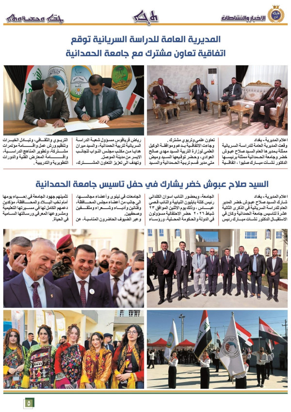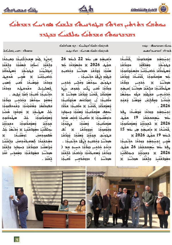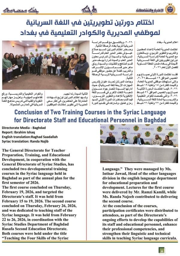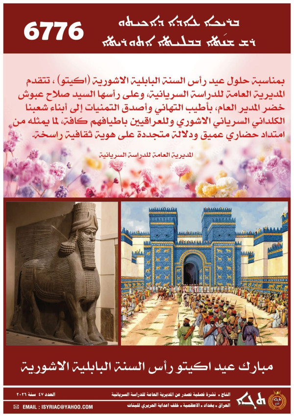 اصدرت شعبة الاعلام في المديرية العامة للدراسة السريانية، العدد الجديد (47) من نشرة التاج الفصلية، والتي بلغت صفحاته (12) صفحة، وجاءت باللغات العربية والسريانية والانكليزية، وضمت اهم الاخبار والتقارير عن نشاطات وانجازات المديرية العامة للدراسة السريانية ، للفصل الاول (كانون 2، شباط ، اذار) من خطتها السنوية لعام 2026.