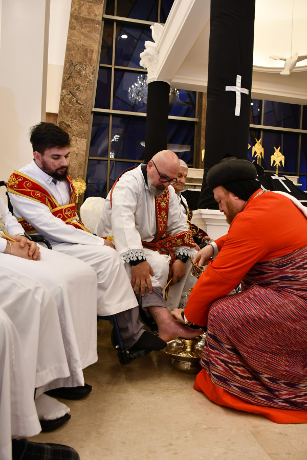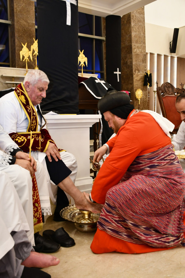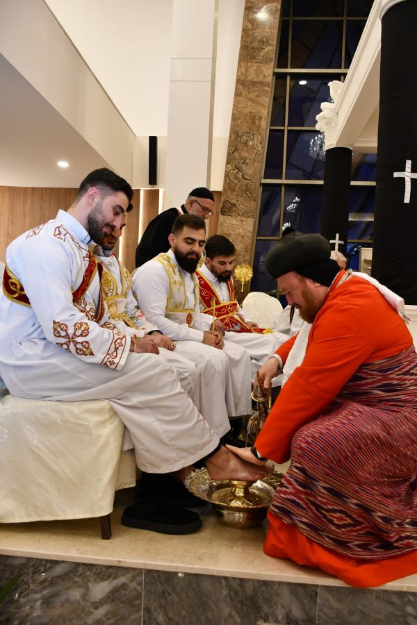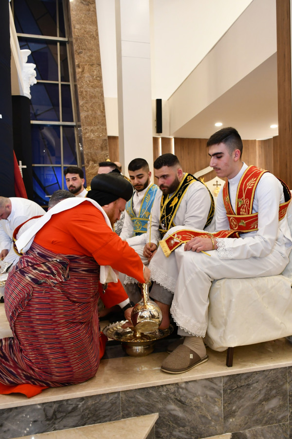 احتفل نيافة راعي الابرشية المطران مار نيقوديموس داؤد متي شرف، يوم الخميس 9 2026، بـ رتبة تغسيل اقدام التلاميذ في كاتدرائية ام النور للسريان الارثوذكس/عينكاوا وبحضور الاباء الكهنة الافاضل والشمامسة والشماسات وجوق الكنيسة وجمع غفير من الشعب المؤمن.