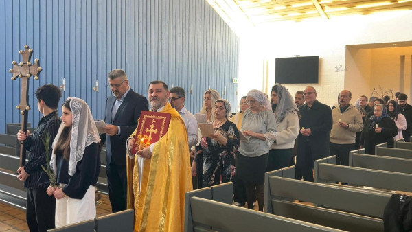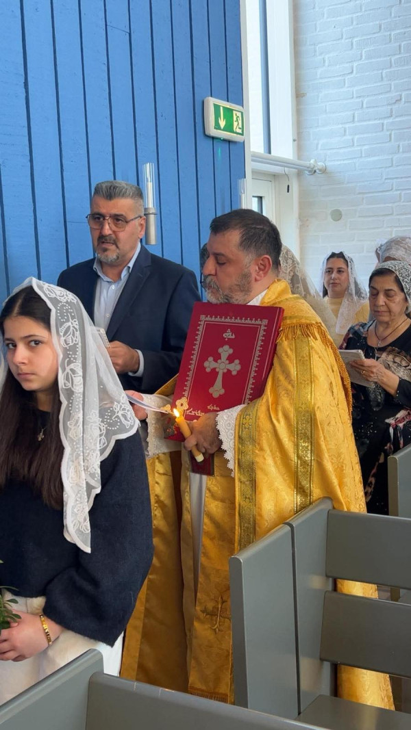 اقام الأب سنحاريب ارميا كاهن رعية مارأفرام رابا وذلك في مدينة اورهوس - الدنمارك قداس عيد القيامة المجيد والكياسا وذلك يوم السبت المصادف: 11 - نيسان / أبريل - 2026 وعاونه في القداس الشماس هادي من الكنيسة الكلدانية الشقيقة والهيئة المرنمة.