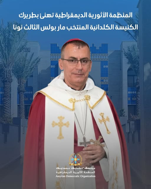 هنأت المنظمة الآثورية الديمقراطية قداسة مار بولس الثالث نونا بانتخابه بطريركاً لكنيستنا الكلدانية في رسالة تهنئة هذا نصها: