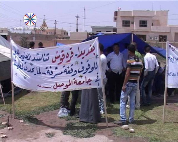 قضاء الحمدانية ، ويأتي هذا الاعتصام نتيجة لعدم موافقة رئاسة جامعة الموصل بأداء