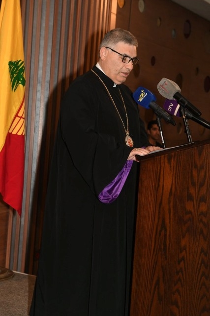 ثم كلمة المطران جورج أسادوريان: نجتمع اليوم لنُحيي الذكرى الرابعة بعد المئة على أبشع مجازر العصر , وهي ذكرى شهداء الإبادة السريانية . آلاف مؤلفة من البشر ساروا على درب الشهادة , ليكونوا لنا المثال والقدوة .فما من حبٍ أعظم من هذا أن يبذل الإنسان نفسه في سبيل أحبائه.