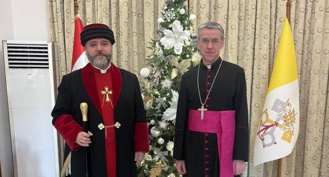 غبطة البطريرك يونان يستقبل غبطة أخيه روفائيل بيدروس الحادي والعشرين ميناسيان بطريرك الأرمن الكاثوليك للتهنئة بعيد الميلاد ورأس السنة