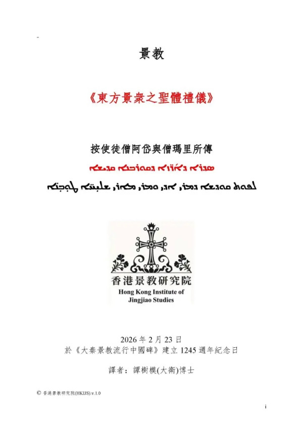 Hong Kong Institute of Jingjiao Studies, 2026.