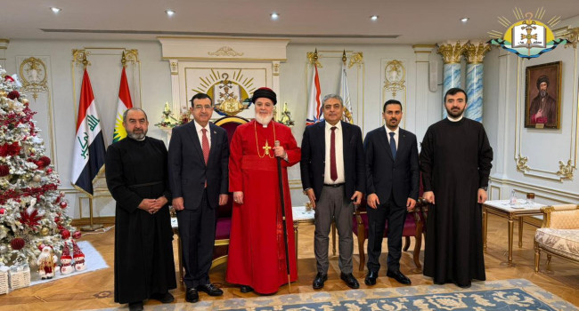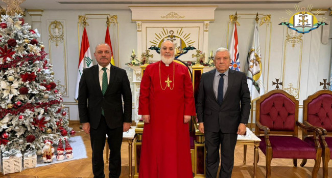 قداسة البطريرك مار آوا الثالث يستقبل السيّد يوحانا يوسف، رئيس مجلس إدارة منظمة إغاثة نينوى، وحضرة القاضي رائد إسحق