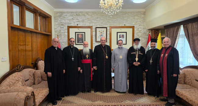 قداسة مار كيوركيس الثالث يونان يستقبل رئيس الكنيسة القبطية الأرثوذكسية في العراق في دار البطريركية في بغداد