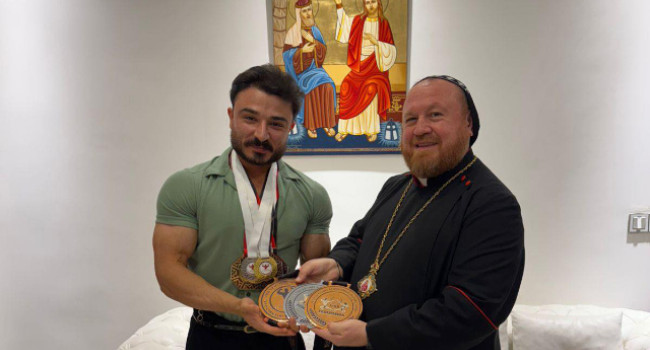 نيافة المطران مار نيقوديموس يستقبل ويهنئ الدكتور رودي رعد ابراهيم لتحقيقه إنجازات متميّزة في مجال رياضة كمال الأجسام