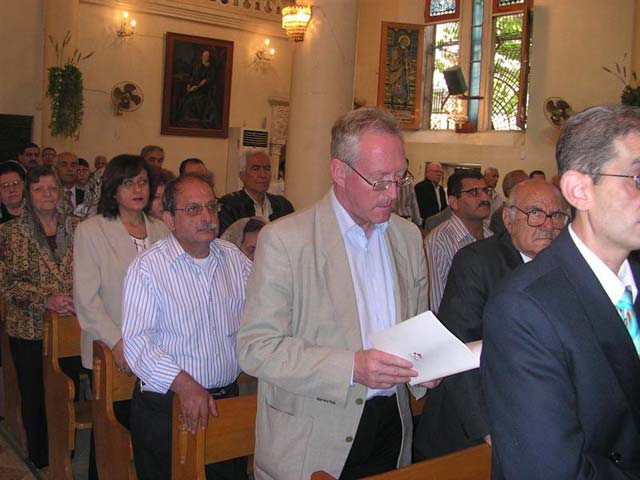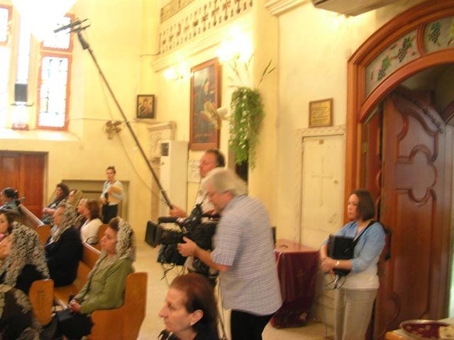 في نهاية القداس عبر " دارميد" عن سعادته و نشوته بسماع الألحان الرهاوية الرائعة والفريدة حسب وصفه وخاصة الصلاة الربانية الملحنة التي تابعها من خلال كراس خدمة المؤمن الموجود في الكنيسة وذلك شيء لم يكن يتوقعه حسب قوله، وأنه قد وجد ما كان يطمح إليه ويبحث عنه لتصوير حلقته، كما عاين الثريا النفيسة المعلقة في الكنيسة التي أهدتها الملكة فيكتوريا ملكة انكلترا كواحدة من ثلاث ثريات كريستال مع جرس كنيسة ضخم للشعب الرهاوي الذي كان يبني كنيسة في مدينة الرها حينها، بعدها حمل الشعب الرهاوي هذه النفائس معه إلى حلب خلال الهجرة الأليمة ولازال ذلك الجرس يقرع يومياً عند كل صلاة. أما " جيليان" منتجة العمل والتي كانت تشرف على كل حركة لفريق التصوير فقد رفضت الإفصاح عن ميزانية العمل ولكن قالت بأن المصروف كبير جداً وأنه سيكون عملاً مهماً جداً ومحترماً أيضاً، مواضيع ذات صلة للكاتب: - حوار مع "سباستيان بروك" أبو الأدب السرياني في هذا العصر 0( زميل البروفسور دارميد في جامعة كمبردج). - " ملتقى مار يعقوب الرهاوي في حلب بمناسبة ذكرى 1300 سنة على رقاده" شارك فيه باحثون ومستشرقون من عدة دول غربية وشرقية. - " مؤسسة برو أورينتي " تختتم اللقاء السرياني بحلب. - المجتمعات الغربية تتطلع إلى خبرة السريان في المنطقة.