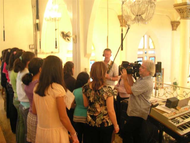 دير في الصين اسمه " تاكين" ومعناه سوريا بفضل الآشوريين. ويتابع ماكولوس: بأن الفريق يتألف من منتج ومصور وخبير صوت إضافة إليه، و سوف يزور مصر والقدس ولكن سوريا هي الزيارة الأساس لأنها تشمل على كل الأشكال الأولى لليتورجيات والألحان الموسيقية الكنسية التي عاشت مع المسيحية، وإنه لشيء رائع وفاخر بأن يكون هنا ويلتقي بسهولة مع أحفاد المسيحيين الأوائل، وسوف تصور السلسلة في الصين أيضاً حيث سيتم تصوير الكنيسة المشرقية( الآشورية) في الصين واسمها " جيان" التي تتضمن مبان وأديرة فيها دير حديث البناء للكنيسة المشرقية يدعى " تاكين" والذي يعني سوريا باللغة (الماندولية)، وستأخذهم نهاية السلسلة إلى يومنا هذا. وقال دارميد عن أن إشهار وبث هذه الحلقات سوف يفيد الألحان السريانية من خلال مشاهدتها من قبل عدد كبير جداً في العالم أجمع، وبذلك سيعرف الغربيون بأنه توجد أمور ثمينة جداً في هذه المنطقة، وإذا كان من الممكن للمراكز الثقافية في الغرب بأن تقوم بالمزيد من الدراسات والنهل من هذه الأصول والاستفادة منها، وكذلك الإطلاع على عيش أصحاب الديانات جنباً إلى جنب بطريقة ملهمة كما هو الآن في سوريا بالتحديد. تشرين الأول/ أكتوبر 2009 وستذاع الحلقات في شهر تشرين الأول/أكتوبر 2009 أي بعد 12 شهراً من الآن كونها سلسلة وثائقية ضخمة جداً وتحتاج كل حلقة فيها إلى ثلاثة أشهر من التصوير، حيث قال "دارميد" بأن الفريق كان قد بدأ مهمته منذ نيسان/أبريل عام 2007، فقد تم تصوير ثلاث حلقات عن الكنيسة المعاصرة وهي القسم الأسهل في السلسلة. وكان الفريق قد صور في زيوريخ وجنيف عن القرن السادس عشر ( عصر الإصلاح في الكنيسة)، ومن ثم تم التصوير في البرازيل والمكسيك التي تُمثل رد الفعل الكاثوليكي على البروتستانتية، وهي الانتشار الواسع للمسيحية في القرن الخامس عشر في أمريكا من خلال الكنيسة الكاثوليكية وليس البروتستانتية، ثم انتقل إلى البرازيل والمكسيك و الولايات المتحدة الأمريكية في وسط بنسلفانيا ومن ثم أوروبا في ألمانيا وبولندا وغيرها، وعن هذا الفريق تحدث دارميد بأنه فريق لا يُضيع أي دقيقة من وقته فلذلك لا تجدهم يضيعون أي وقت في عمل غير مفيد!!!.