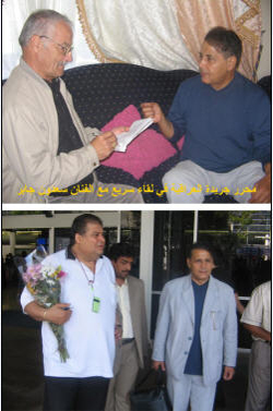 - : أهلا ً بكم وبجريدة العراقية، وأنتم تتحملون المشقة وأشكركم جزيل الشكر والتقدير على المساهمة مع إخوتي الحضور في استقبالي ، وإنه لشعور طيب تشكرون عليه.