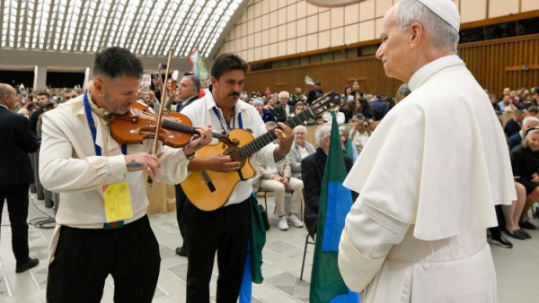 بعدها ذكّر الحبر الأعظم بأن هذا اليوبيل يتزامن مع الذكرى السنوية الستين لأول لقاء عالمي عقده البابا بولس السادس مع شعوب الروم والسنت في منطقة بوميتسيا، القريبة من روما، وذلك في السادس والعشرين من أيلول سبتمبر ١٩٦٥، ويبقى شاهداً على هذا اللقاء التاريخي تمثال العذراء المعروض في الفاتيكان بعد أن حملته هذه الجماعة خلال رحلات حجّ، ثم سلمته إلى كنيسة روما. وشدد لاون الرابع عشر على أن لقاءات الأحبار الأعظمين مع شعوب الروم والسنت شكلت وتشكل علامة للحوار الحيّ والخدمة الرعوية الخاصة بهم، هم من يشكلون جزءاً لا يتجزأ من شعب الله الحاج. وقال في هذا السياق إن الله الآب يحبهم ويباركهم، كما أن الكنيسة تحبهم وتباركهم، ولا بد أن يضعوا ثقتهم بالله وحده، وألا يتسمكوا بالممتلكات الأرضية، وأن يعكسوا إيمانهم المثالي قولا وفعلا.