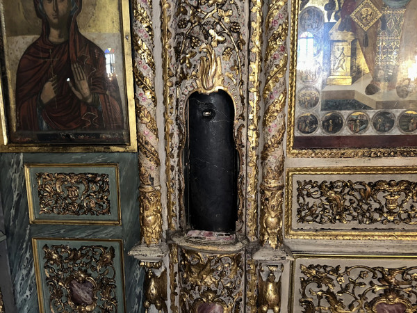 قطعة من عمود الجلد داخل كنيسة القدّيس جاورجيوس في حيّ الفنار- إسطنبول. مصدر الصورة: سهيل لاوند/آسي مينا