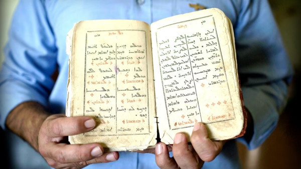 متحدث آرامي من منطقة الجليل في إسرائيل يحمل كتاب ترانيم. (فينبار أوريلي / رويترز)