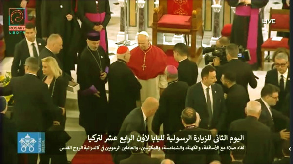 بعد صلاة الصباح في كنيسة الروح القدس، وسط إسطنبول التي ترأسها البابا لاون الرابع عشر، وحضرها عدد من الكرادلة والبطريركان لويس روفائيل ساكو واغناطيوس يوسف الثالث يونان للسريان الكاثوليك.