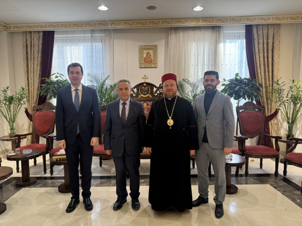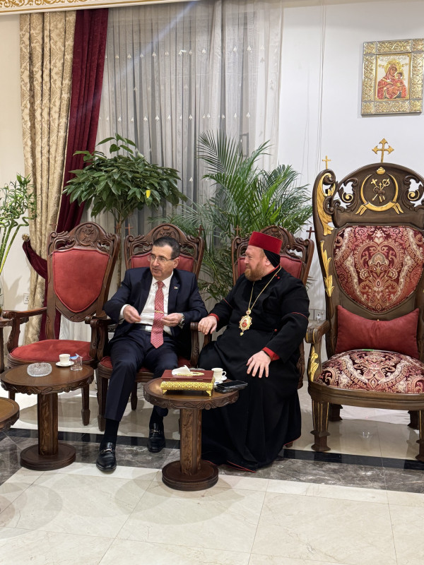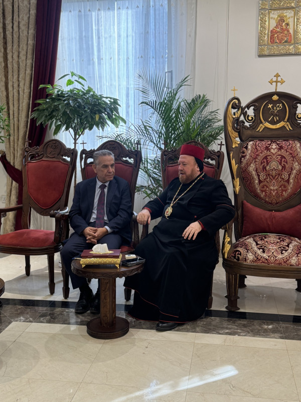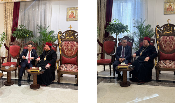 وفي اليوم التالي، السبت - ٦-١٢-٢٠٢٥، استقبل نيافته القنصل الجديد للمملكة الأردنية الهاشمية في أربيل السفير السيد زياد عيسى البطارسة والوفد المرافق له مهنئاً إياه بتسلمه المنصب الجديد، ومتمنيًا له التوفيق في مهامه.
