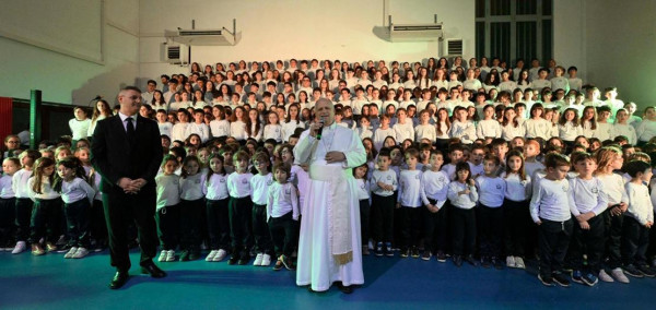 فبعد مغادرته فيلا باربيريني القريبة، حيث يعتاد الإقامة أيّام الثلاثاء، توجّه البابا إلى المدرسة، ثم انضم إلى التلاميذ وعائلاتهم في الصالة الرياضية لحضور الحفل الموسيقي. وشكّلت الأمسية مناسبة عبّر خلالها الأطفال عن تمنياتهم بعيد ميلاد مجيد للجميع، مؤكدين أنّ الغِنى الحقيقي لا يُقاس بما يحصل عليه الإنسان، بل بمقدار السلام الذي يزرعه في داخله وفي علاقاته مع الآخرين.