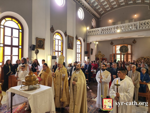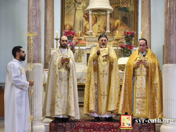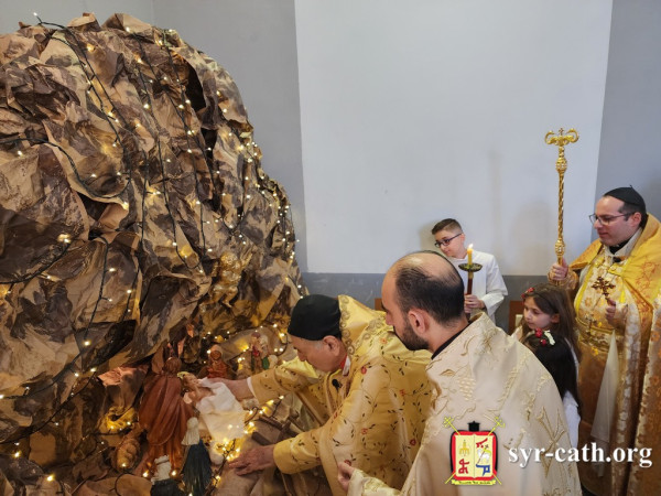 في بداية القداس، أقام غبطته الرتبة الخاصّة بعيد الميلاد بحسب الطقس السرياني الأنطاكي، وفي نهايتها، رنّم غبطته الإنجيل المقدس من بشارة القديس لوقا، ثمّ أضرم ناراً في موقدة وُضِعَت في وسط الهيكل، وزيّح فوقها الطفل يسوع. بعدئذٍ طاف غبطته في زيّاح حاملاً الطفل يسوع، يتقدّمه الكهنة والشمامسة والأطفال، فيما الجوق ينشد تسبحة الملائكة "المجد لله في الأعالي وعلى الأرض السلام والرجاء الصالح لبني البشر"، وترانيم الميلاد، ليوضَع بعدها الطفل يسوع في المكان المرموز به إلى المذود في المغارة التي نُصِبَت داخل الكنيسة.