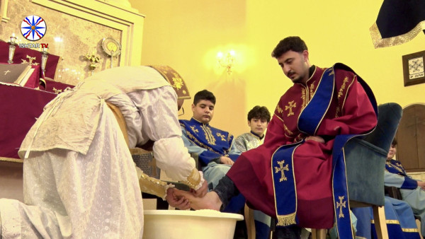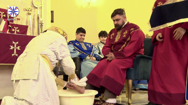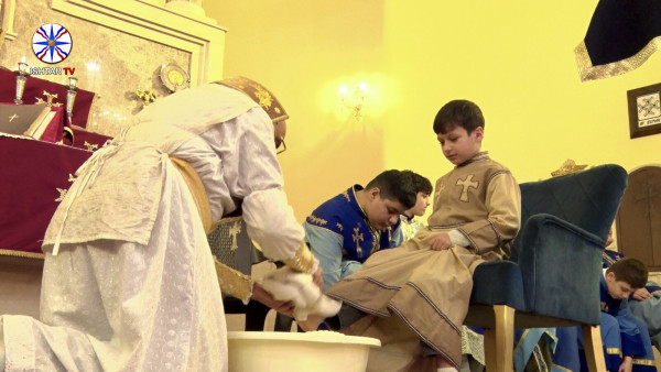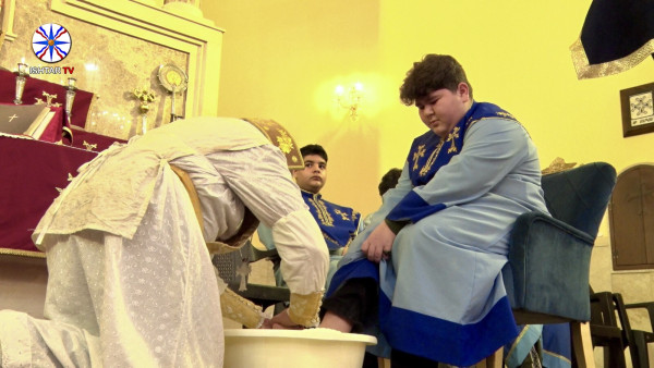 اقام الاب الفاضل ارتون خالاتيان راعي كنيسة الصليب المقدس للارمن الارثوذكس رتبة وصلاة غسل ارجل التلاميذ، كما قال السيد المسيح لتلاميذه: فان كنت انا السيد والمعلم قد غسلت ارجلكم فانتم واجب عليكم ان يغسل ارجل البعض. اي تواضع هذا، ان يكسر الرب حاجز الكبرياء لغسل ارجل تلاميذه.