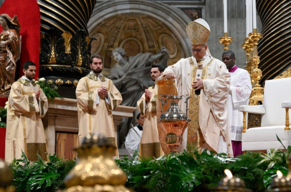 ترأس قداسة البابا لاوُن الرابع عشر صباح اليوم الخميس في بازيليك القديس بطرس بالفاتيكان قداس الميرون في يوم خميس الأسرار بارك فيه زيت العماد وزيت المرضى وكرّس زيت الميرون، وخلال الذبيحة الإلهية ألقى الاب الأقدس عظة قال فيها أيها الإخوة والأخوات الأعزاء، ها نحن الآن على أعتاب الثلاثية الفصحية. مرة أخرى، سيقودنا الرب إلى ذروة رسالته، لتصبح آلامه وموته وقيامته قلب رسالتنا. إن ما نحن بصدد عيشه من جديد، يملك في الواقع في ذاته القدرة على تغيير ما يميل الكبرياء البشري عادةً إلى تجميده: هويتنا، ومكاننا في العالم. إن حرية يسوع تغير القلب، وتداوي الجراح، وتعطر وجوهنا وتجعلها مشرقة، وتصالح وتجمع، وتغفر وتُحيي.