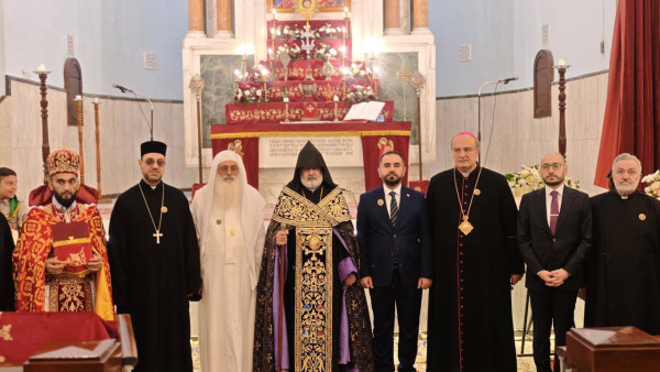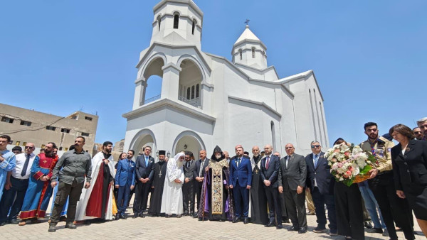 برعاية نيافة المطران أوشاكان كولكوليان، رئيس طائفة الأرمن الأرثوذكس في العراق، لإحياء الذكرى الـ 111 للإبادة الجماعية الأرمنية على قاعة كولبينكيان بكنيسة القديس كريكور المنور في بغداد.