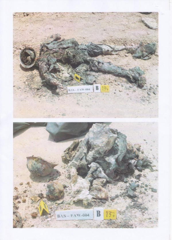 ونرجو قراءة جواب الوزارة رقم 2 أدناه، الذي نقلنا منه المعلومات أعلاه، ومرفق 4 صور أستلمناها أيضاً من الوزارة، ولو أنها صورة محزنة ومؤلمة. ولكن يجب تقبل الحقيقة رغم أنها مؤلمة في كثير من الحالات. تظهر كيف يتم التعامل مع الرفاة عند استخراجها.